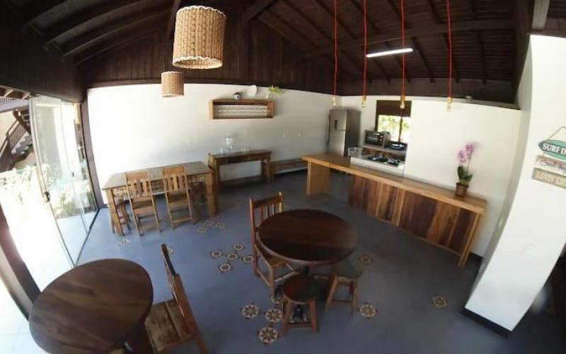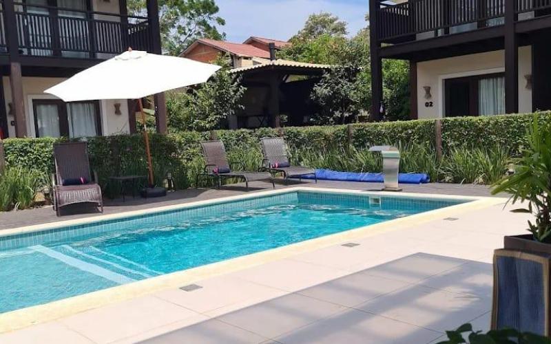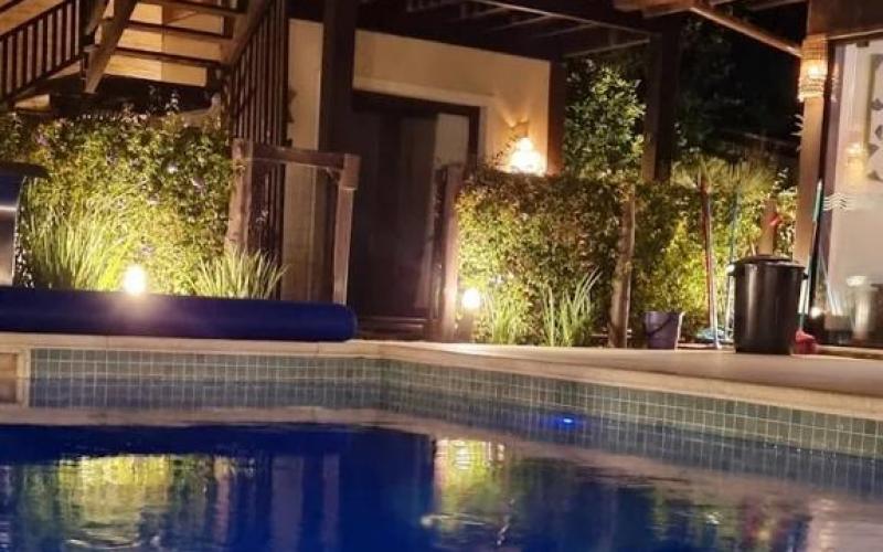 Area para café da manha na beira da piscina